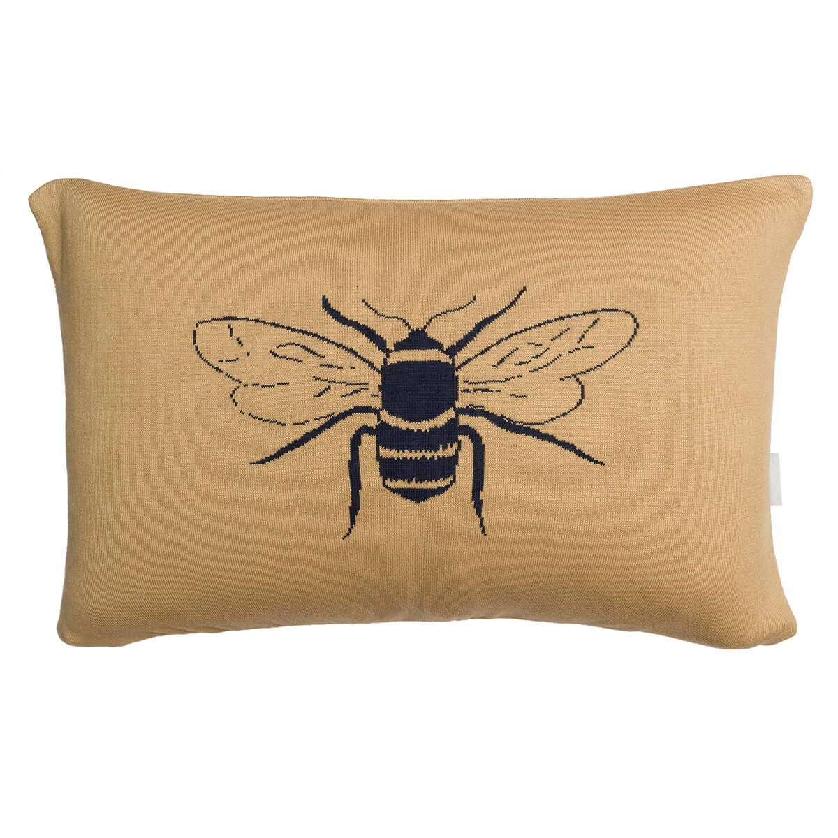Make a stylish statement in your home with this pretty knitted cushion, which features Sophie’s bee-autiful bee on a soft golden camel ground. The reverse features honeycomb spots. Perfect for adding a splash of colour and cosy touch up to your home interior.Â