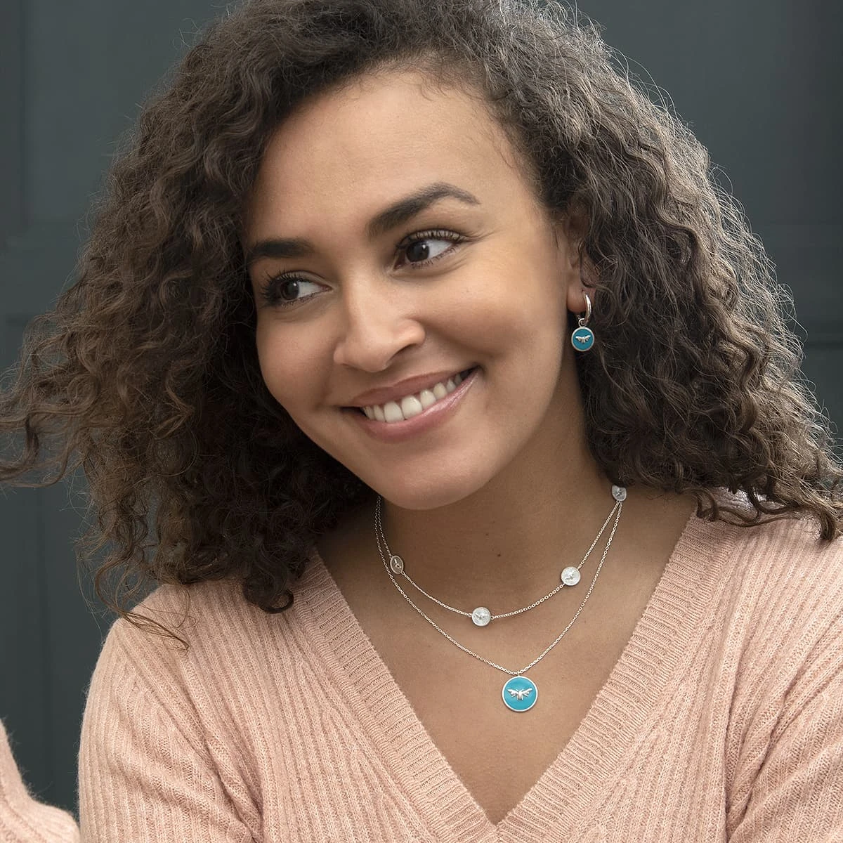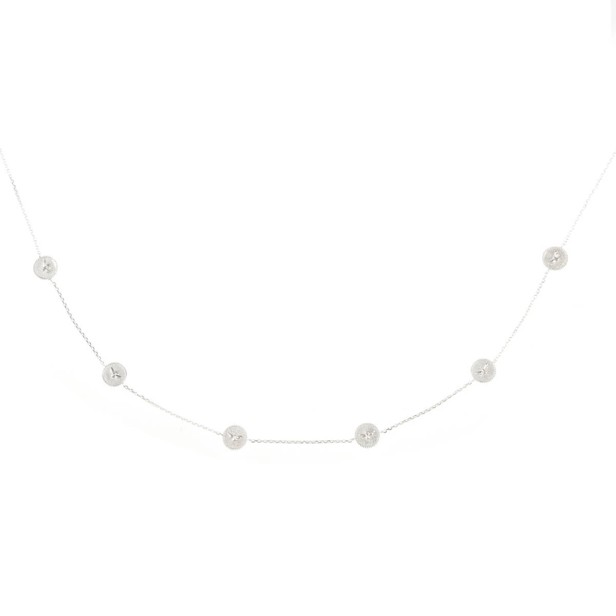 A beautiful necklace featuring six coin charms with delicate buzzing bees. Made from 925 sterling silver, it makes a lovely gift idea for her or an excellent addition to your jewellery collection. The chain can be worn between 40cm and 44cm.Â