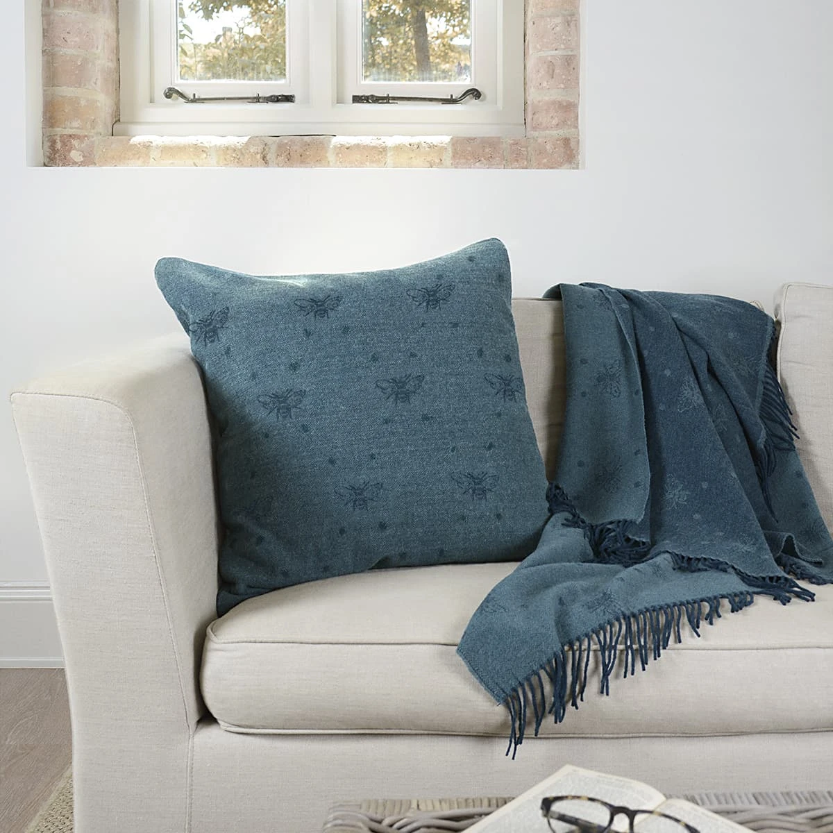 This lovely cushion is made from 100% wool with a duck feather inner and is sure to add a beautiful touch of teal to any home. Covered in delicate bees, it’ll add texture and comfort to a sofa, armchair or bedroom.