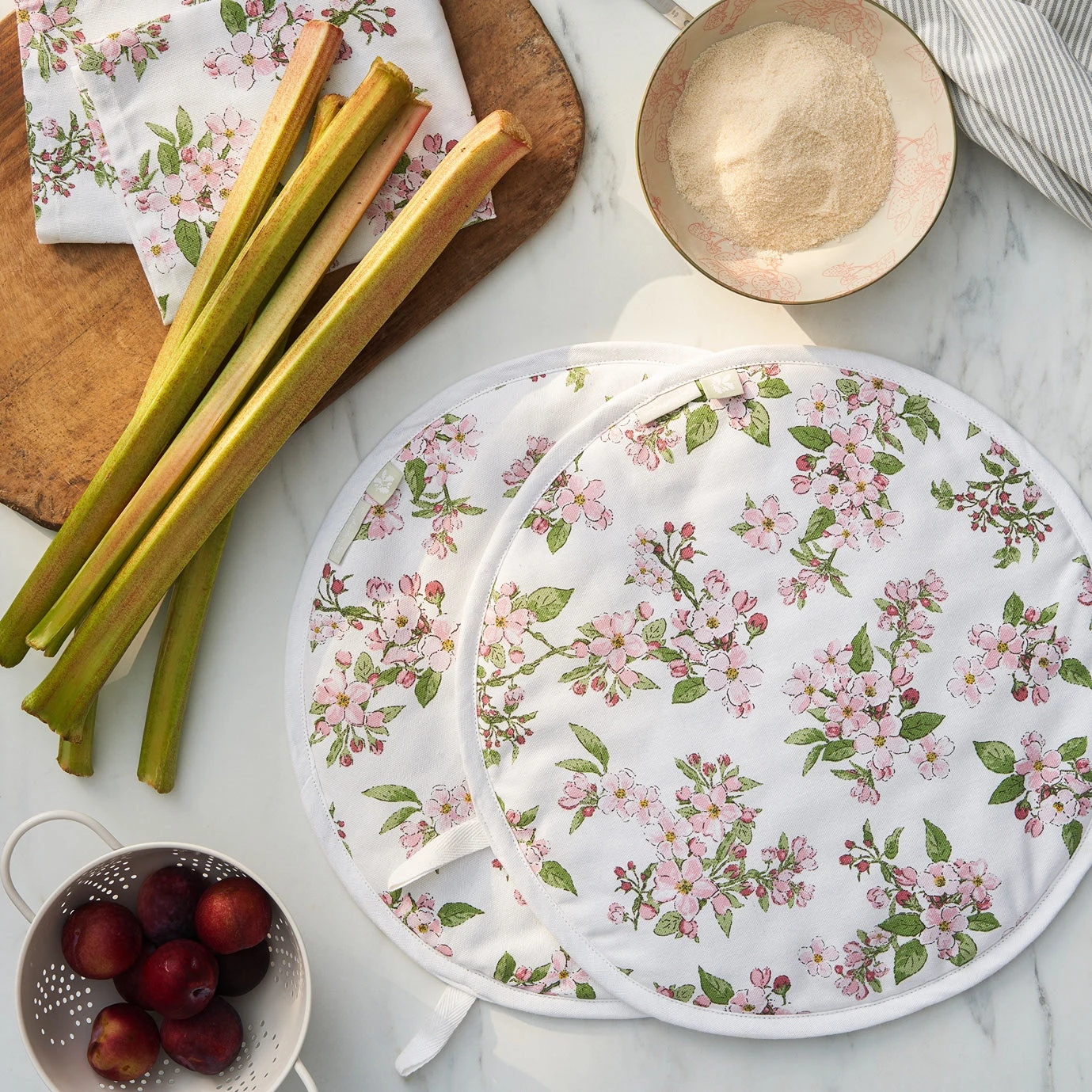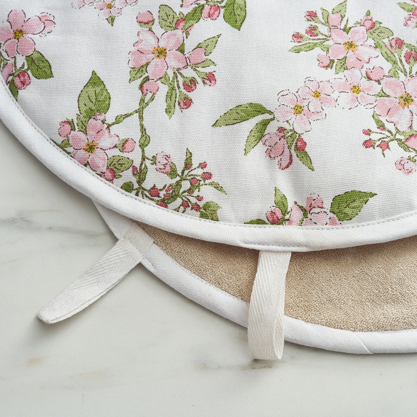 This practical and stylish circular cotton hob cover will add a fresh spring look to your kitchen with its delicate pink and green Blossom print. Featuring Sophie’s elegant and eye-catching spring motif on a crisp white background with terry towelling base, it’s perfect for keeping hob and cooker tops clean and scratch-free.