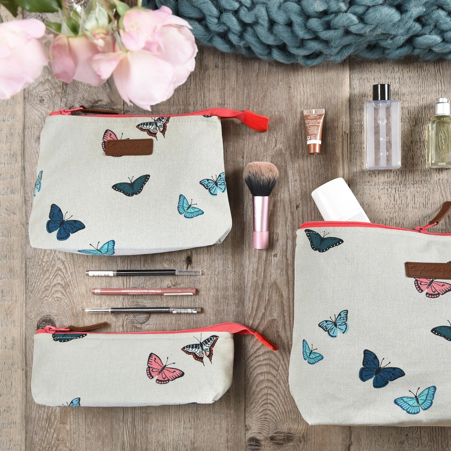 Perfect for your makeup essentials this wonderful canvas makeup bag has a clever wipe-clean interior lining and features Sophie’s beautiful butterflies on a soft neutral background. Measuring approximately 20 x 14.8cm, this lovely bag has a flat base enabling it to sit upright.