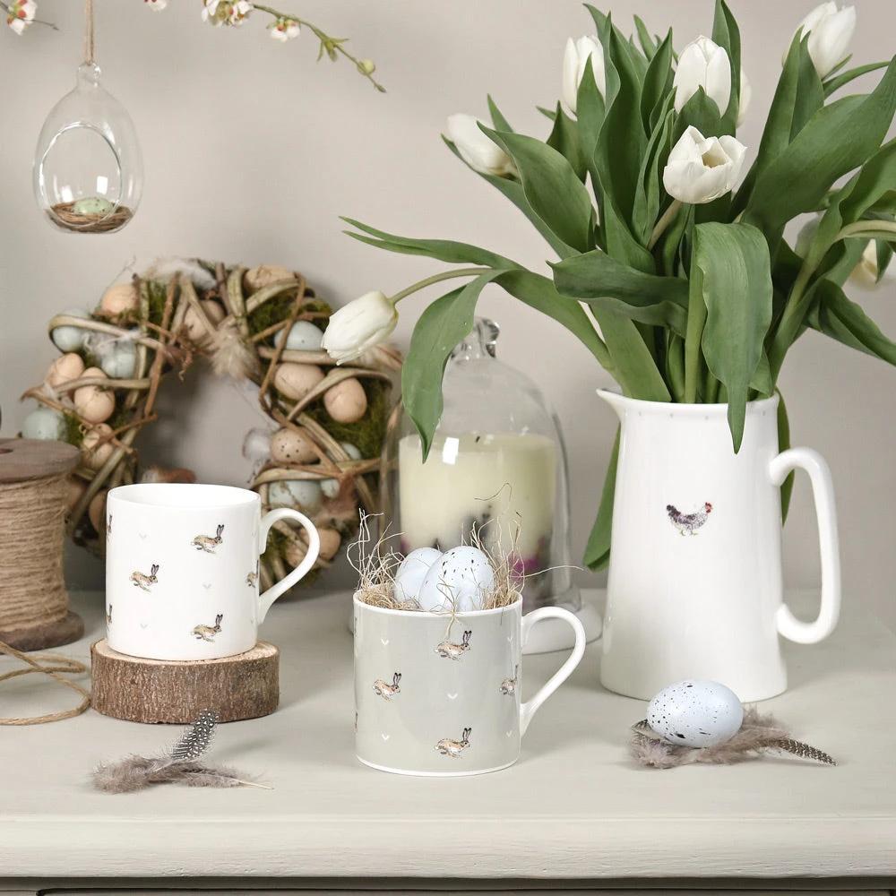 Treat yourself to one of our chicken fine bone china white jugs. Available in four sizes – mini, small, medium, and large. A Speckled Maran hen sits on the front and back of the jug, with some small grey eggs around the outer rim. You’ll find the perfect size for milk, cream, water, gravy, custard and chocolate sauce! They also make pretty flower vases for a kitchen, bedroom, or table setting. A great addition to a country home. A wonderful gift for a loved one, and all our jugs come in a smart gift box (which also makes it easy to wrap.)