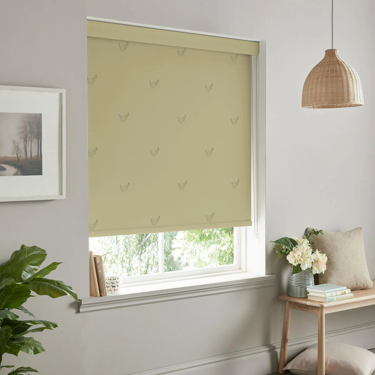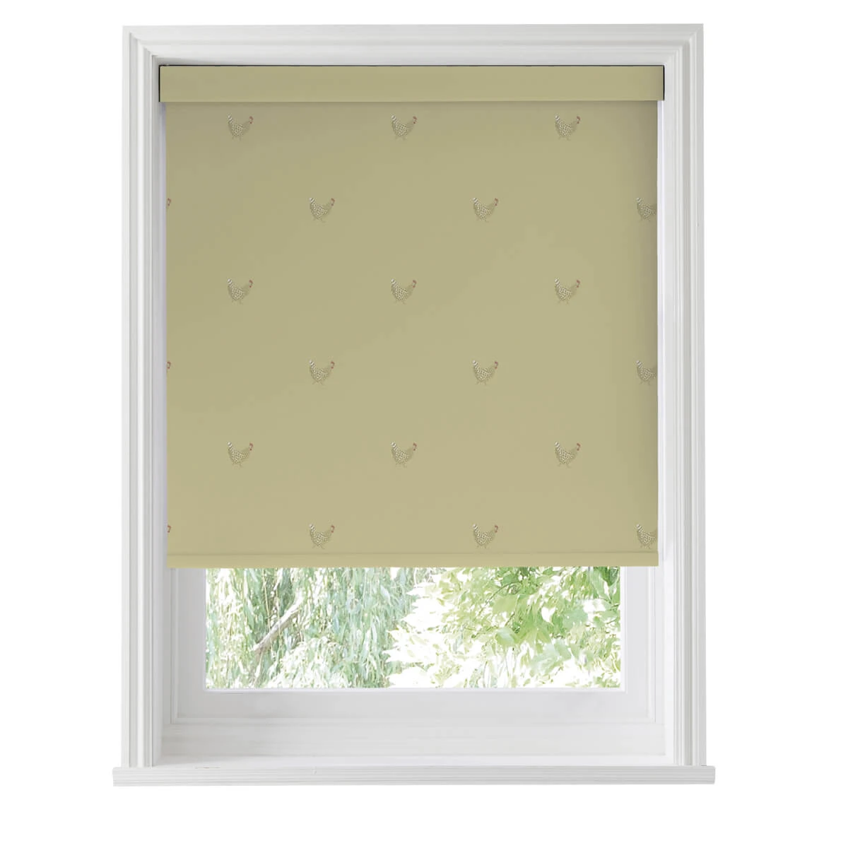 Perfect for adding a stylish touch to any home interior. This roller blind is dotted with Speckled Maran Hens on an ochre coloured background. Perfect for hen keepers and those who love chickens. Excellent for any room in your home, including living rooms, bedrooms, hallways, dining rooms, kitchens and bathrooms.