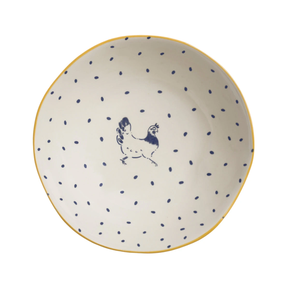 A pretty nibbles bowl made from stoneware featuring Sophie’s chicken illustration surrounded by dotted eggs. Excellent for nibbles, movie night snacks or a little dessert bowl. It is sure to add a touch of country living to any kitchen or dining room.