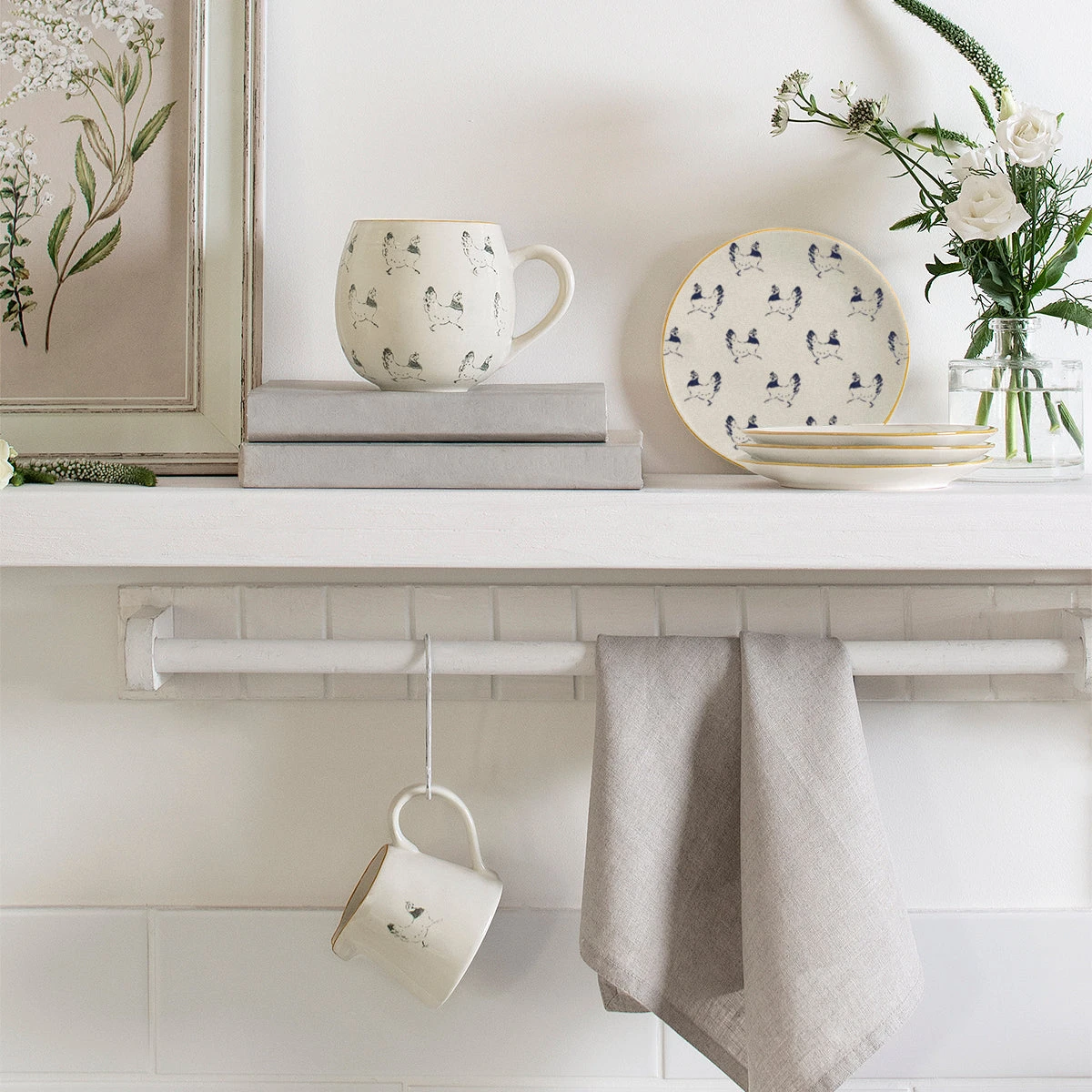 Covered in Sophie’s country chickens this lovely side plate is made from stoneware and has an ochre coloured rim. Measuring 15cm diameter, this lovely plate makes a wonderful small canape plate or side plate for any stylish table setting.