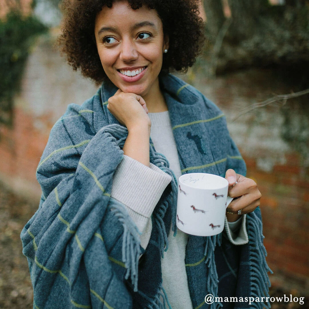 This beautiful knitted throw is made from 100% wool and is sure to add texture and comfort to any home interior. Featuring lovely dachshund silhouettes on a navy checked ground. Perfect for layering over sofas, armchairs, or displaying as a bed throw.