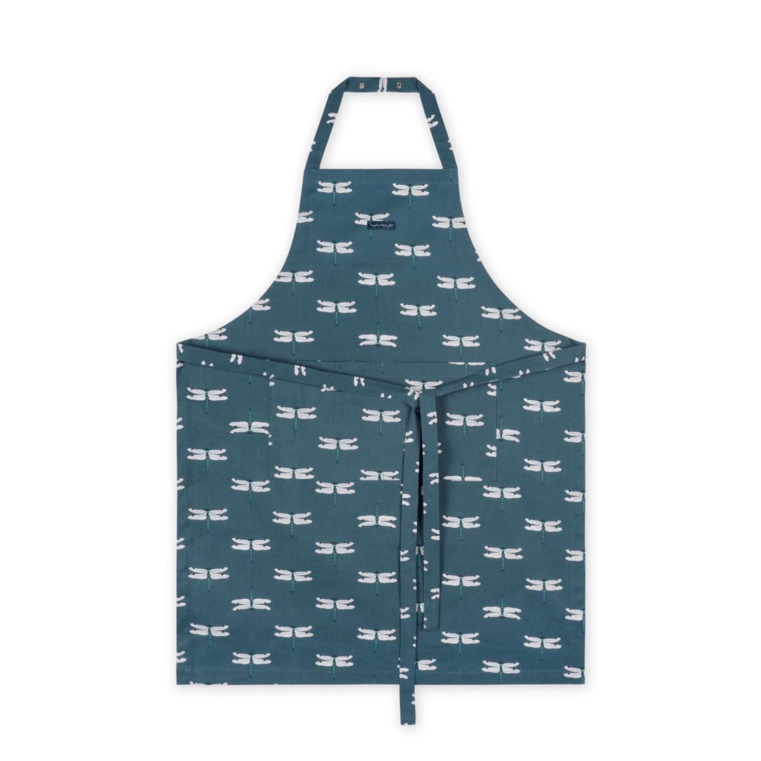 Taking inspiration from the dragonflies in Sophie’s garden, this splendid cotton apron features illustrations of slender bodies and narrow pairs of delicate wings. They contrast beautifully against the contemporary midnight blue background – a gorgeous design to brighten up your kitchen.