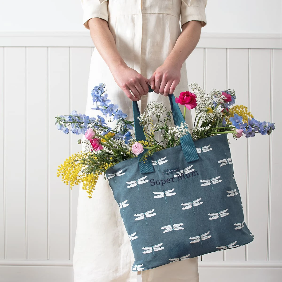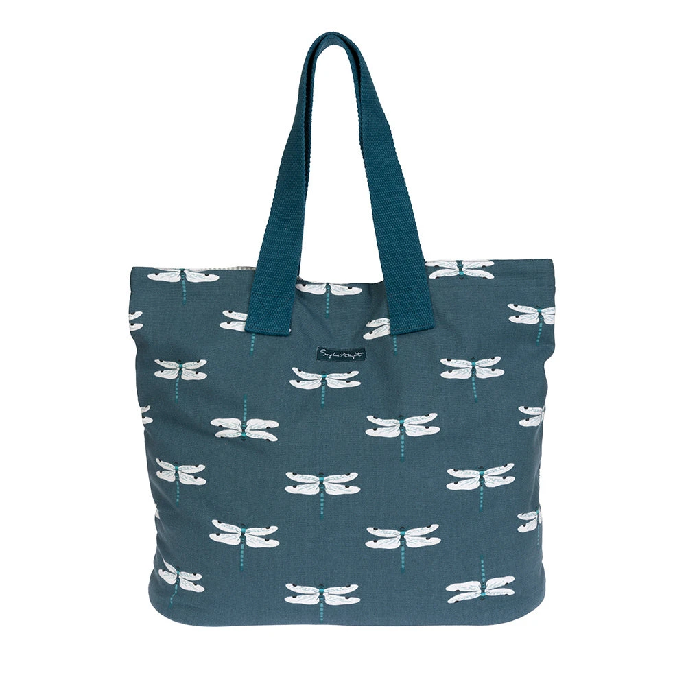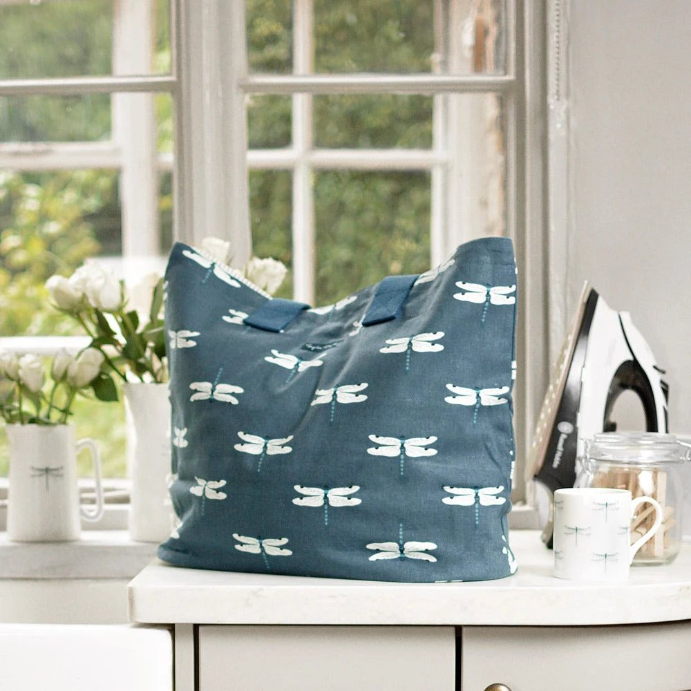 Lightweight to carry, this contemporary midnight blue Everyday Bag is dotted with intricate dragonflies. Made from cotton fabric, it’s very practical for shopping, work folders, children’s toys or anything else you need to take on the move!