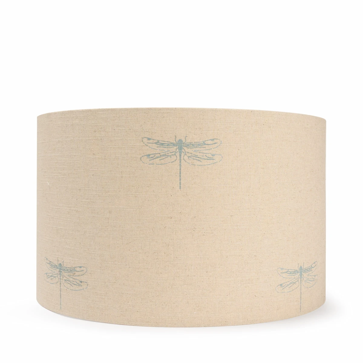 Perfect to add a touch of colour to the interiors of any room, this handmade drum lampshade is made from our teal Dragonfly linen blend fabric. Sophie’s delicate teal blue dragonfly silhouettes pop against the neutral ground on this stylish design. The light shade has an adapter so that it fits all standard UK and EU fittings. The reversible gimble (wire inner) means the shade can be used on a standing lamp, table lamp or hung from a ceiling bulb. If you are looking for some co-ordinating pieces we have blinds, curtains and fabric by the metre in our Dragonfly design.