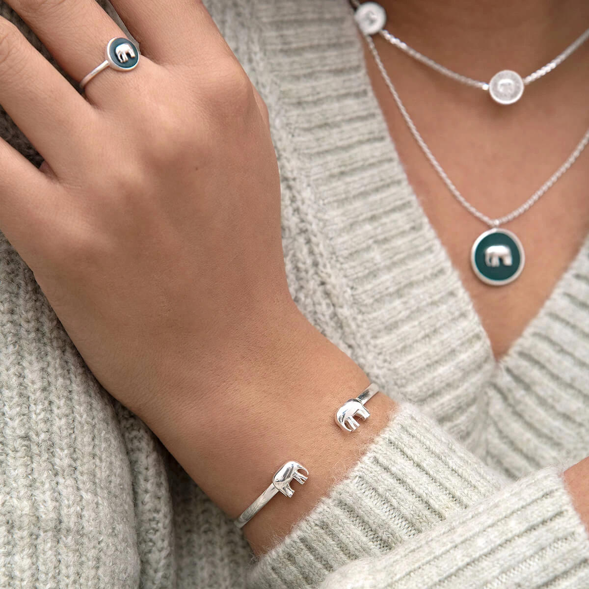 Made from 925 sterling silver, this signature ring features a magnificent elephant on a green enamel ground. It makes a lovely piece of jewellery to treat yourself with or a wonderful gift idea for loved ones. Perfect for making a stunning statement every day or wear for special occasions.Â