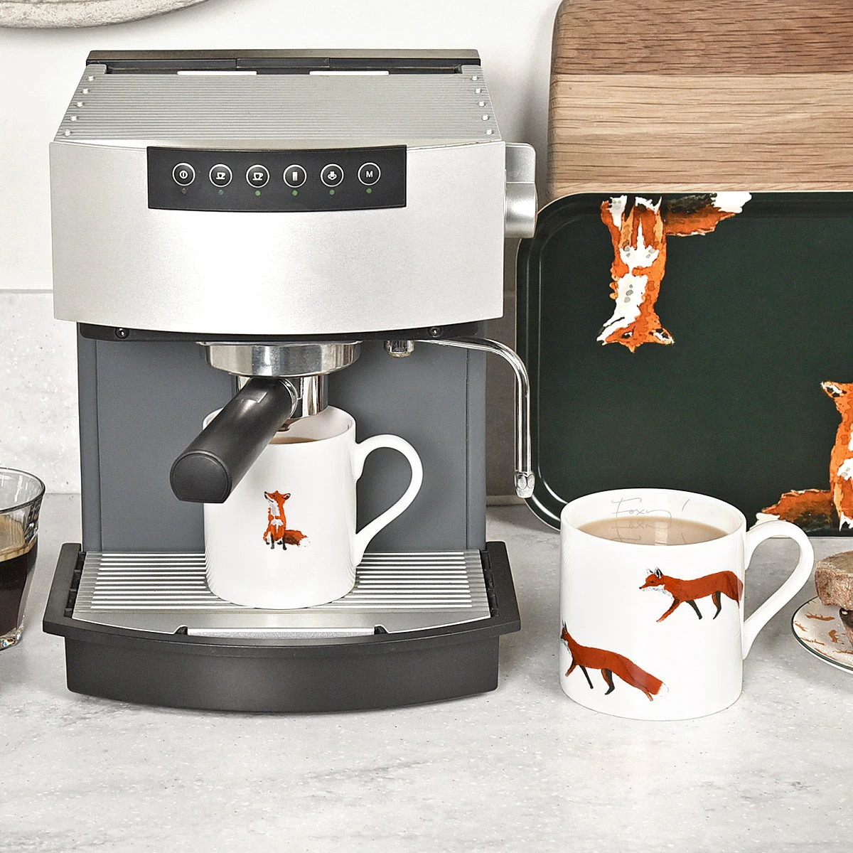 Inquisitive yet charming red foxes stroll around this white fine bone china mug, perfect for a morning coffee. ‘Foxy!’ is written on the inside in Sophie’s handwriting.