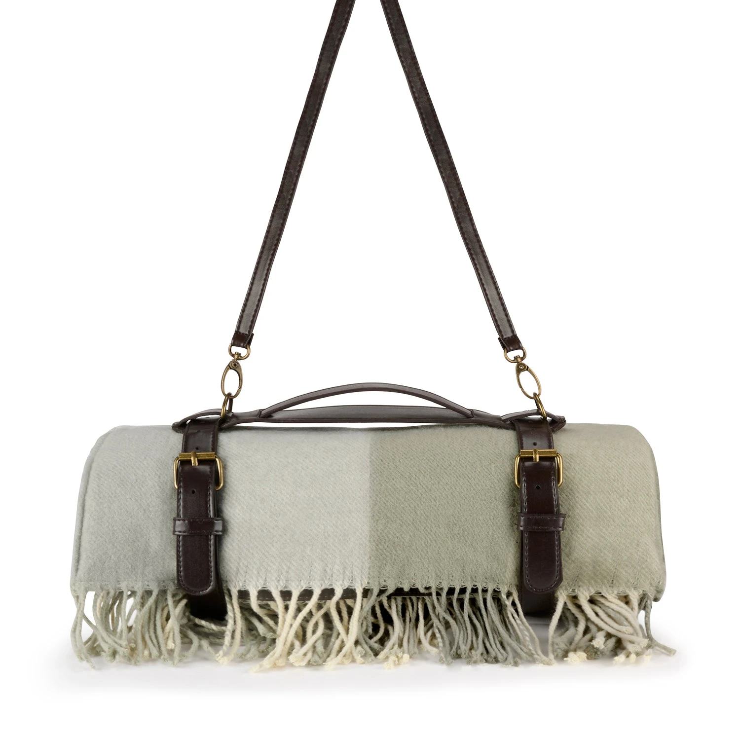 - Brown faux leather straps