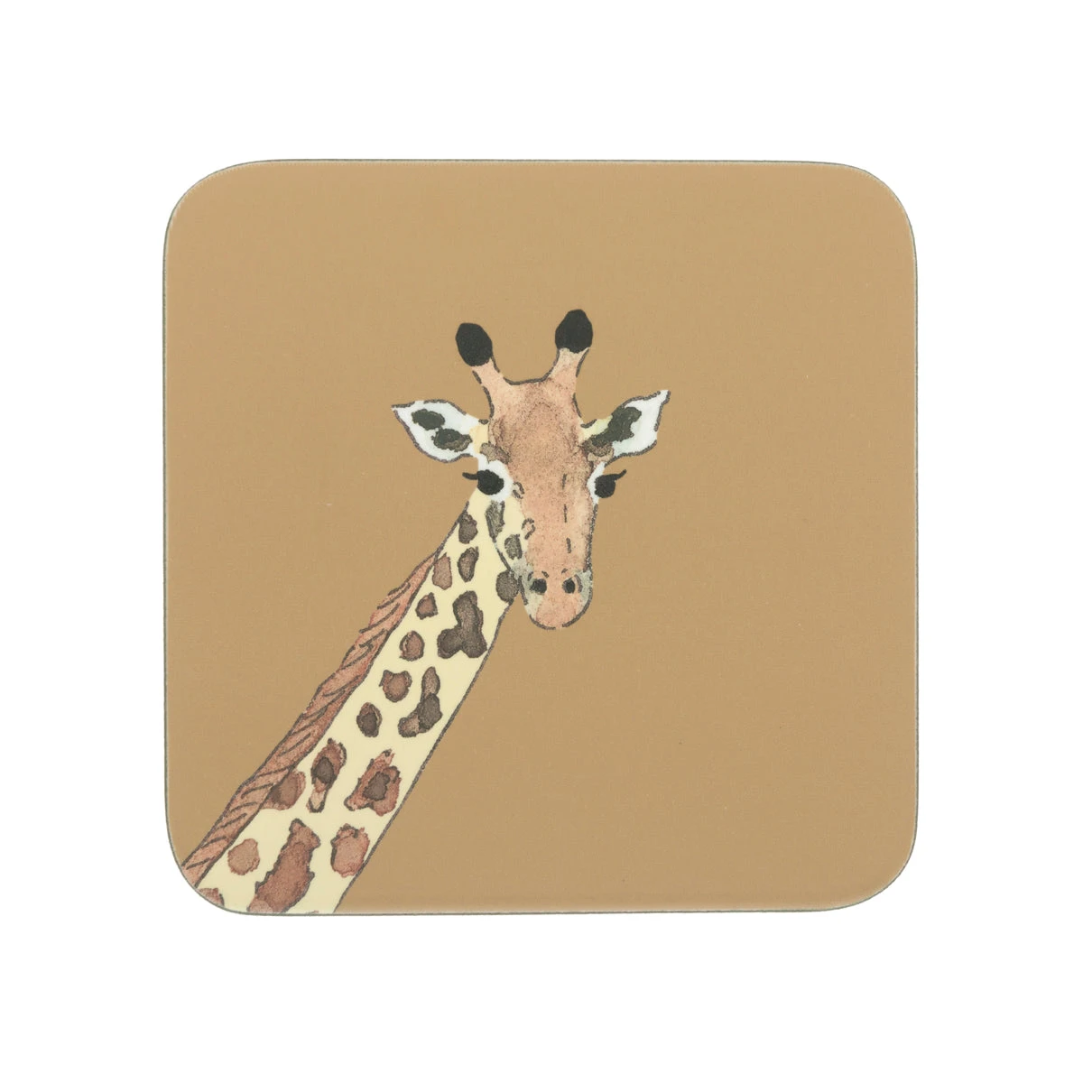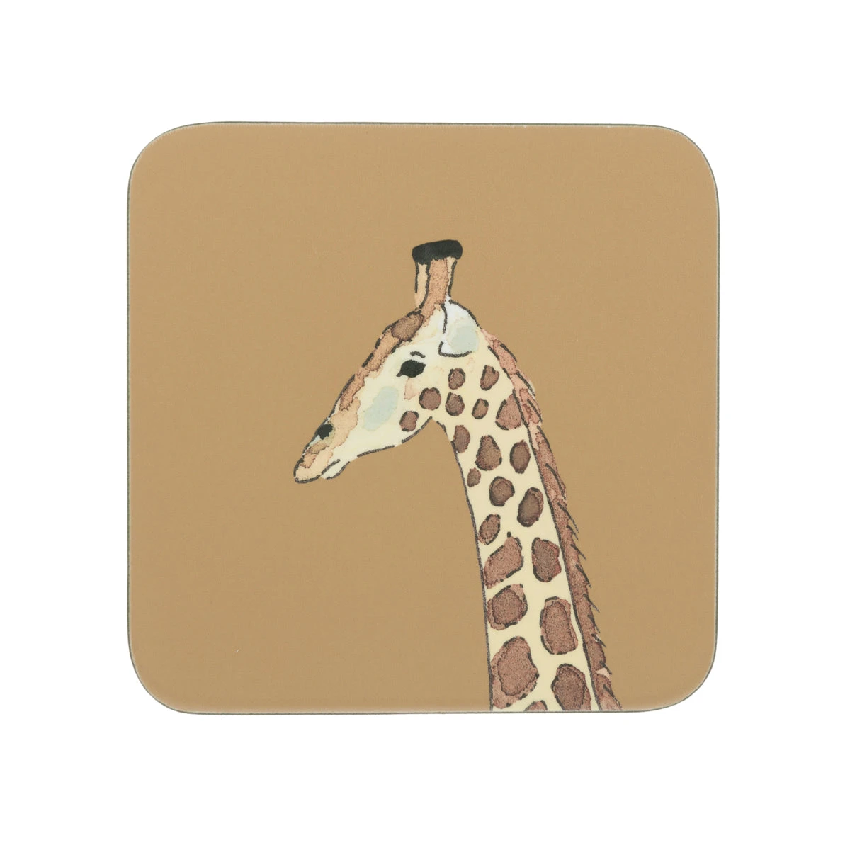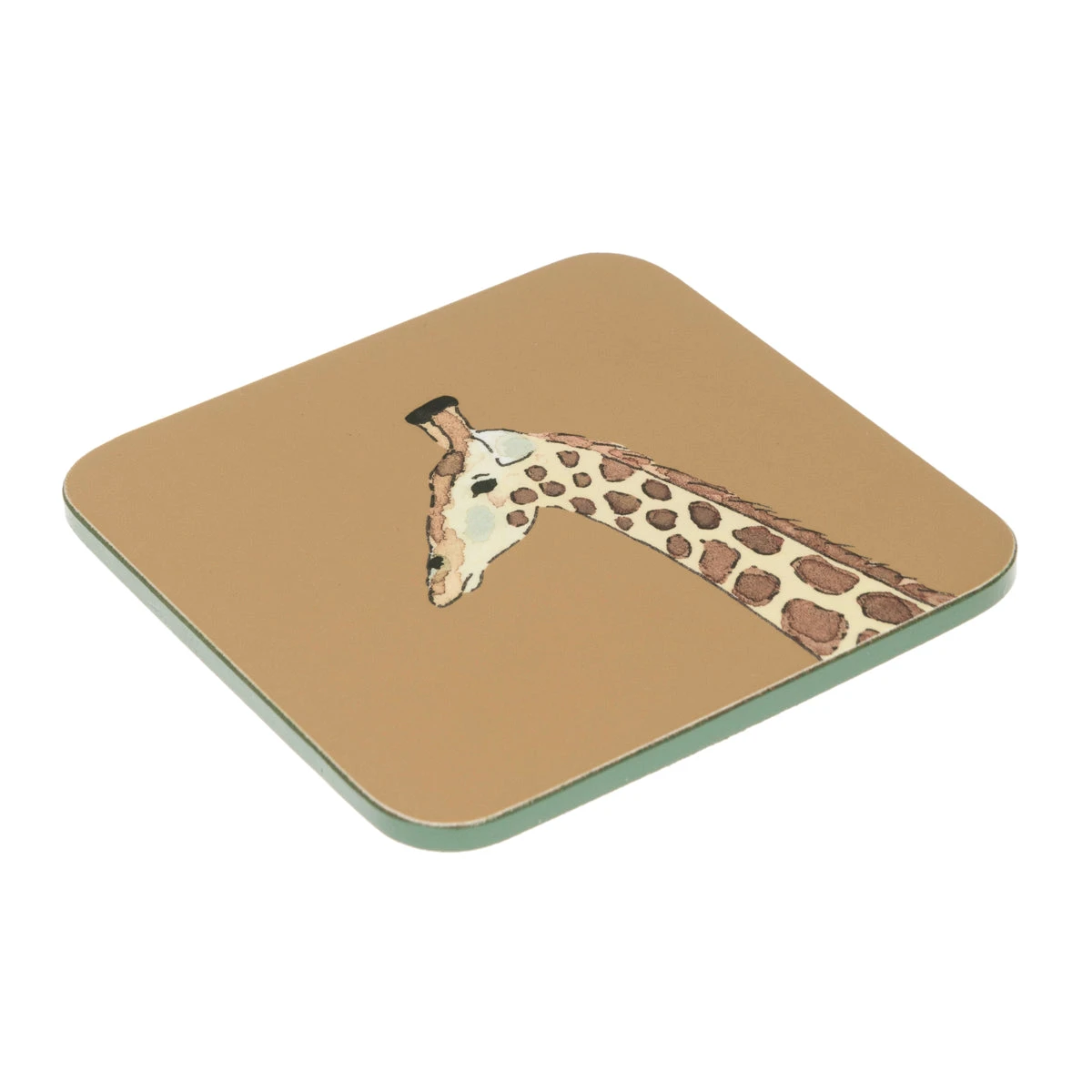 Sophie’s beautiful giraffe design sits perfectly on a tan ochre background on these cork coasters. They come as a set of four with a different quirky giraffe design per coaster. Perfect for keeping your coffee table or dining table free from marks and scratches. They come smartly boxed making a wonderful gift idea for new homeowners and pair perfectly with the matching placemats.