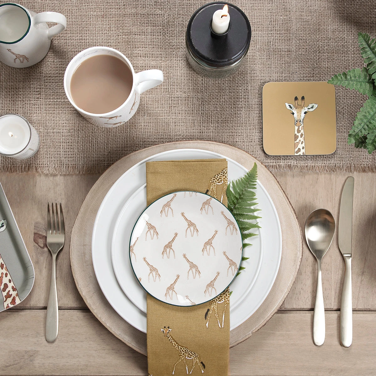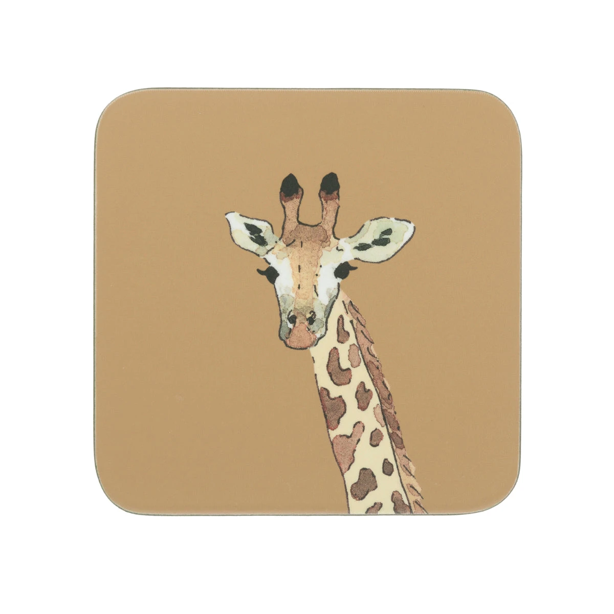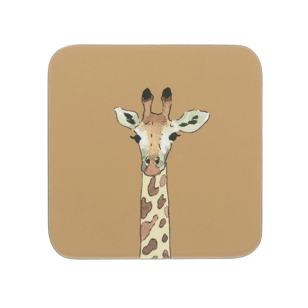 Sophie’s beautiful giraffe design sits perfectly on a tan ochre background on these cork coasters. They come as a set of four with a different quirky giraffe design per coaster. Perfect for keeping your coffee table or dining table free from marks and scratches. They come smartly boxed making a wonderful gift idea for new homeowners and pair perfectly with the matching placemats.