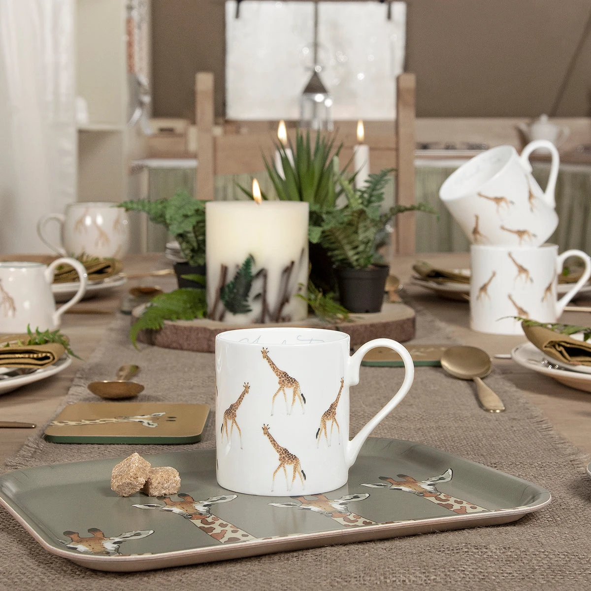 These fabulous giraffes stand tall on this white fine bone china mug, which is available in two sizes, standard and large. Perfect for your morning coffee, this lovely mug comes in a smart gift box, making an excellent gift idea for wildlife and safari lovers.Â