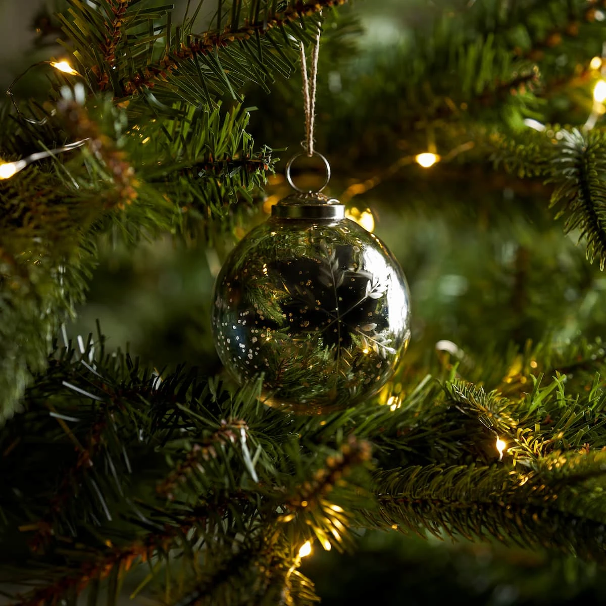 Add a touch of seasonal sparkle to your home this Christmas with these beautiful Glass Silver Snowflake Baubles. Boasting an antiqued silver finish and delicately etched snowflakes on either side, this decoration comes in two sizes and is sure to make a stylish yet festive statement. Complete with a twine hanging loop; so you hang on your tree, tie to wreaths and garlands, use as table decorations or simply hang around your home over the festive period.