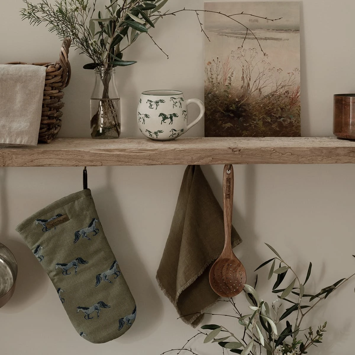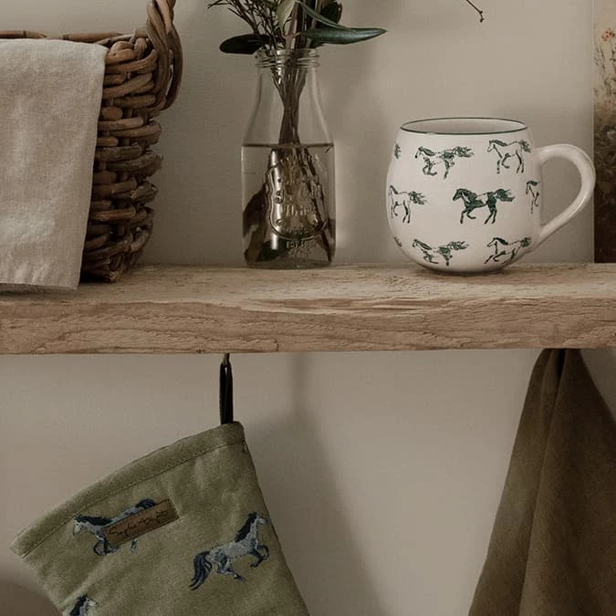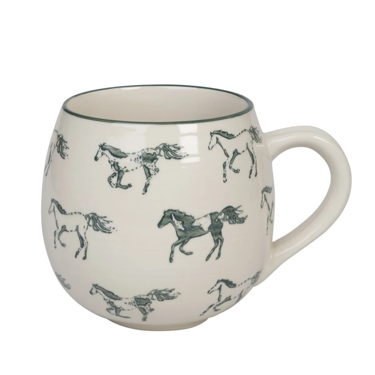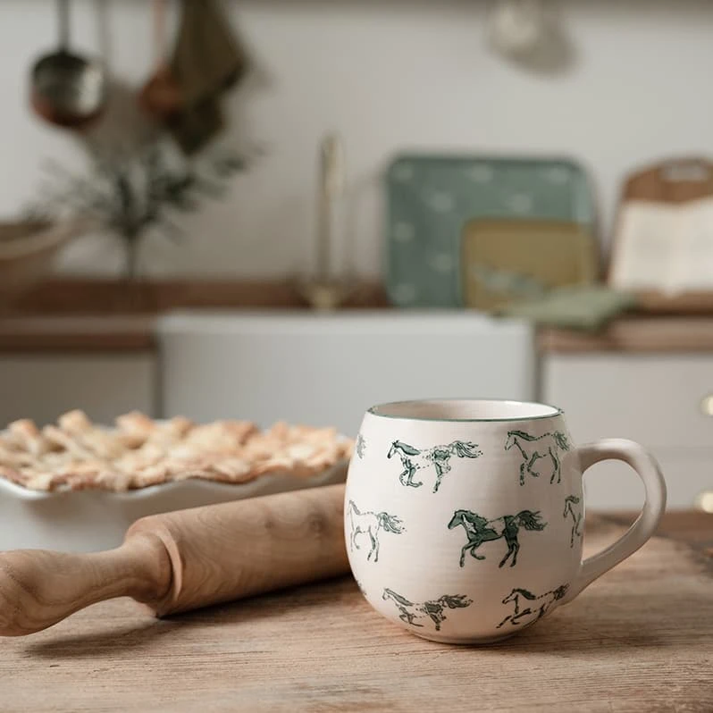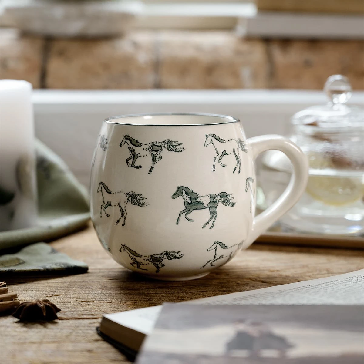 This super stylish stoneware mug is perfect for sipping your morning coffee or winding down in the afternoon with a cuppa. Featuring delicate moss green outlines of magnificent grey horses sprinting, this lovely mug holds 500ml and would make an excellent gift idea for any horse rider or enthusiast.