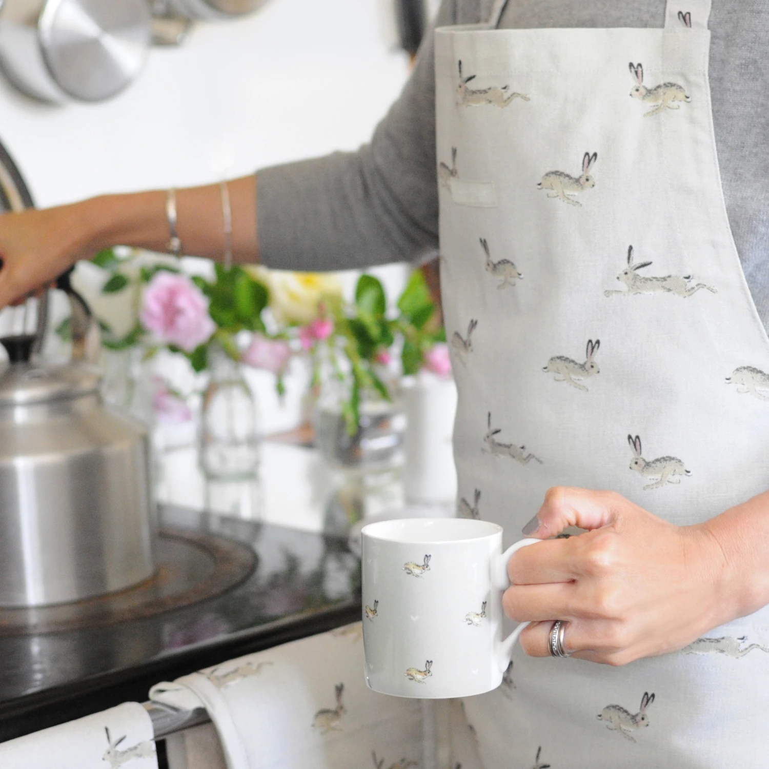 Keep your clothes free from baking mess and protect yourself from cooking spillages with this wonderful adult apron from our Hare collection. A lovely country design covered in Hares racing over the stone coloured background. There is a handy pocket, at the front of the apron, which is perfect for holding your utensils while you cook.