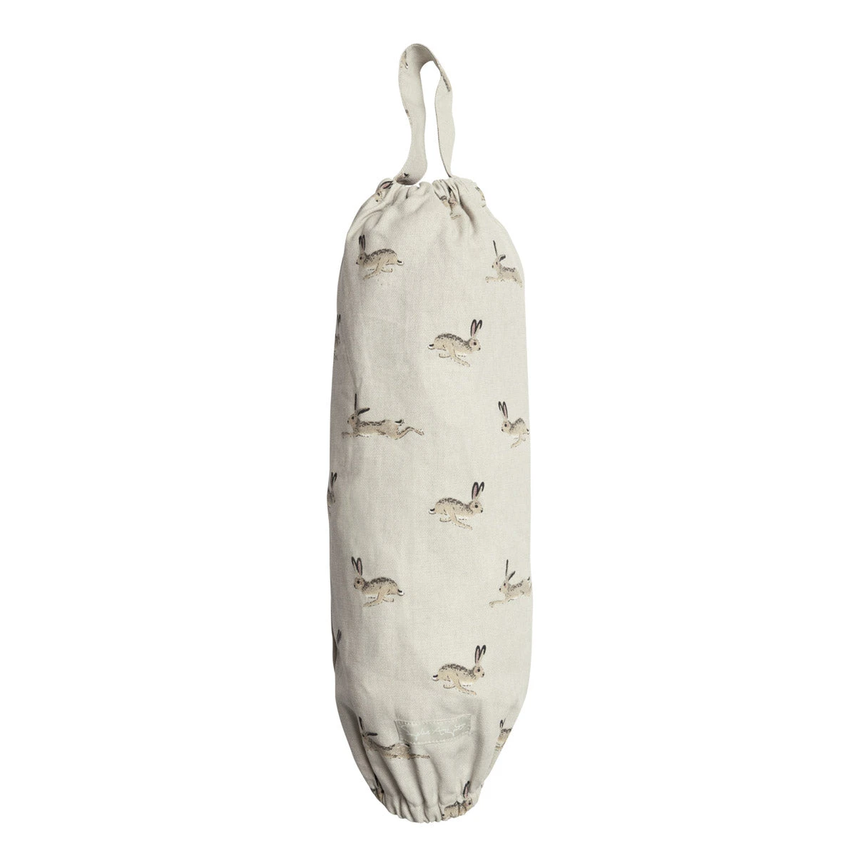 Keep that stash of carrier bags stored in style and ready for recycling with this Carrier Bag Holder from our Hare Collection. Pop used plastic bags in the elasticated opening at the top, and simply pull one out of the elasticated bottom when you need one. It holds approximately 30 bags. A practical and stylish gift for your home!