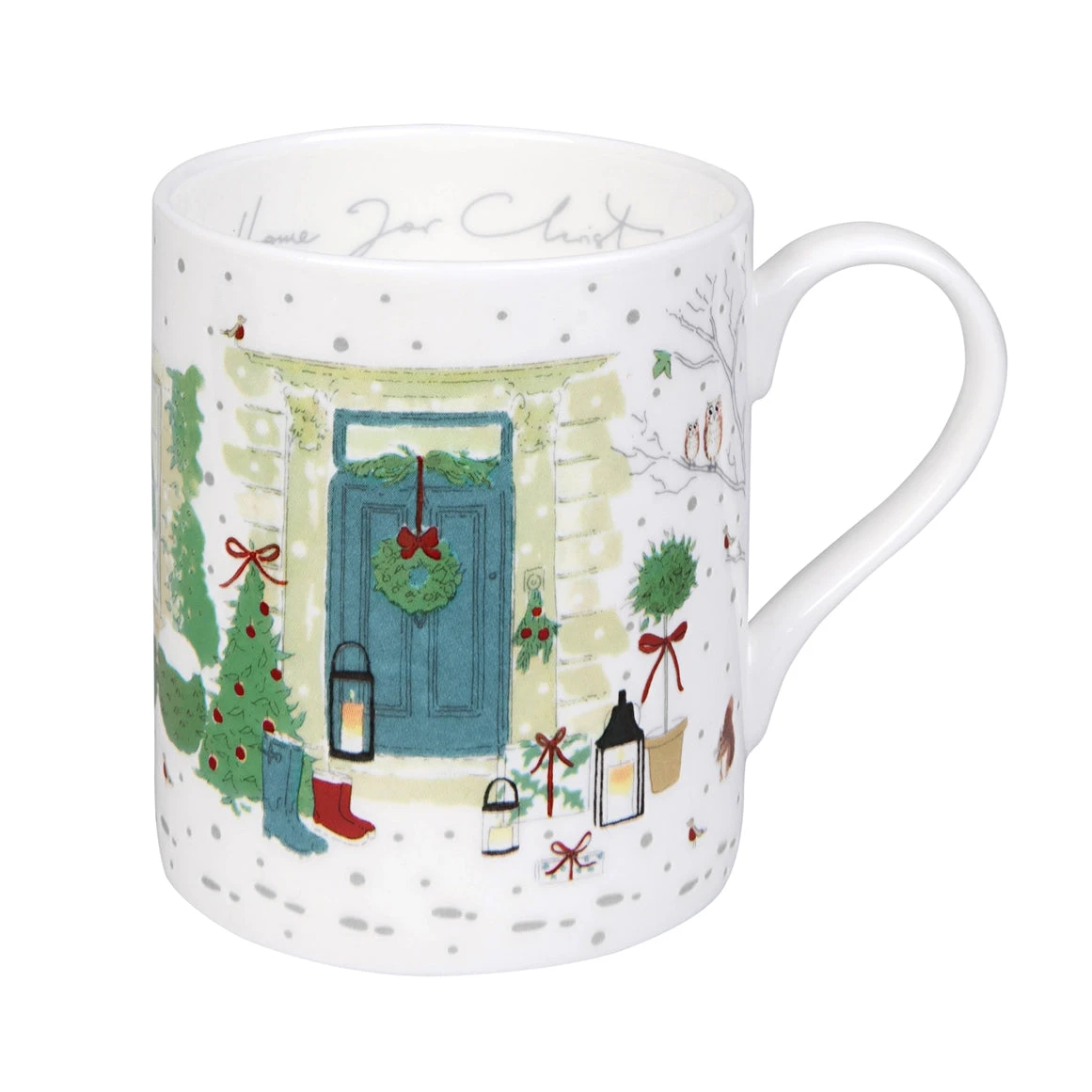 A truly gorgeous fine bone china mug, with an idyllic ‘Home for Christmas’ scene. Golden footsteps through the snow lead up to the door of a family home – decorated with a wreath and accompanied by glowing candle lanterns, presents and snowshoes. Presented in a gift box, this would make a wonderful gift for a friend or family member.