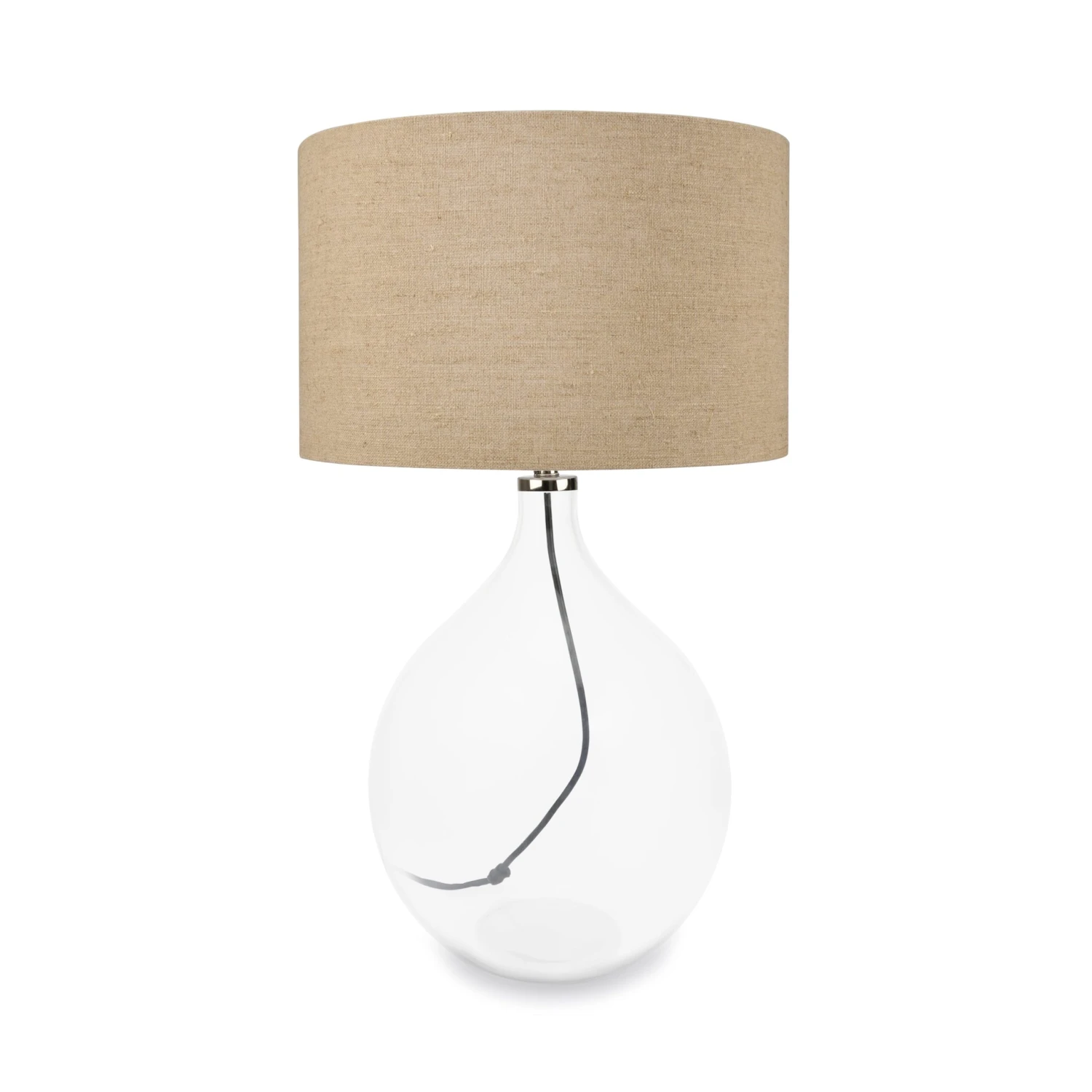 Designed to complement other pieces in our Langham collection, this contemporary glass base lamp comes with a textured linen shade and looks great in any room. Use for task lighting in the bedroom or living space while reading or as ambient lighting in any room for a soft warm glow after dark.