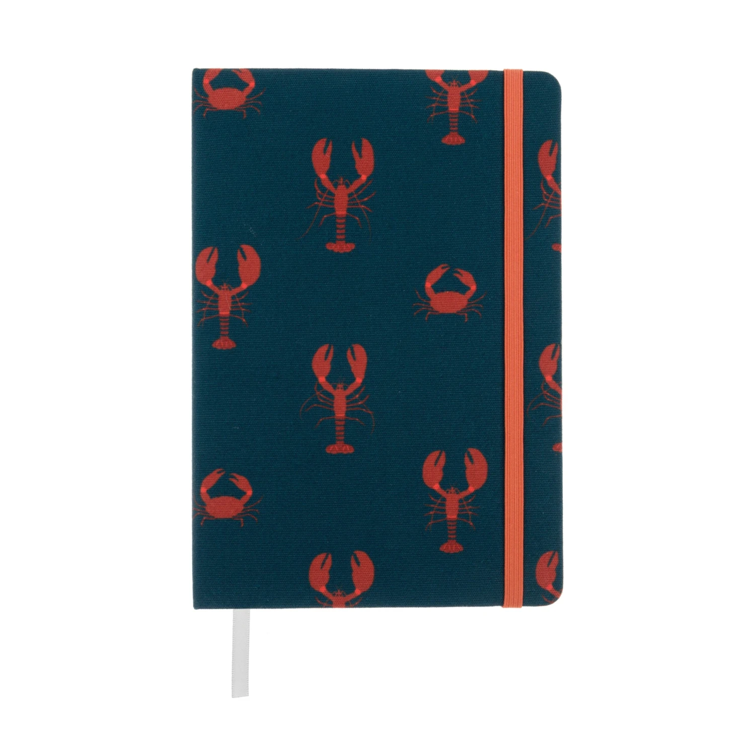 This stylish A5 notebook features a range of lobsters with an odd crab on an dark ocean blue background and makes the perfect notebook for jotting down your shopping lists or keeping in your handbag. It has 160 pages (80 sheets) of crisp ivory paper, a practical ribbon page marker and an elastic closure.Â