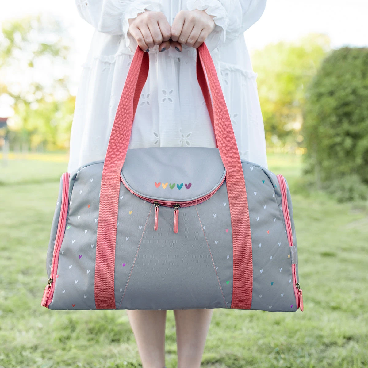 Pack up a romantic picnic for two and head to the beach or park with this beautiful picnic bag covered in multicoloured hearts on a slate grey background. The thick insulation is perfect for keeping your food and drink fresh and cool, and there are also two insulated side pockets, excellent for storing a bottle of something special.Â