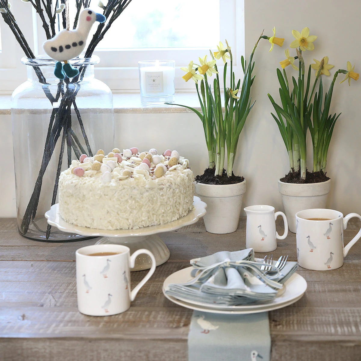 A stylish Runner Duck stands on the front and back of this fine bone china jug. Available in four sizes – mini, small, medium and large, you’ll find the perfect size for milk, cream, gravy, custard, water and chocolate sauce.