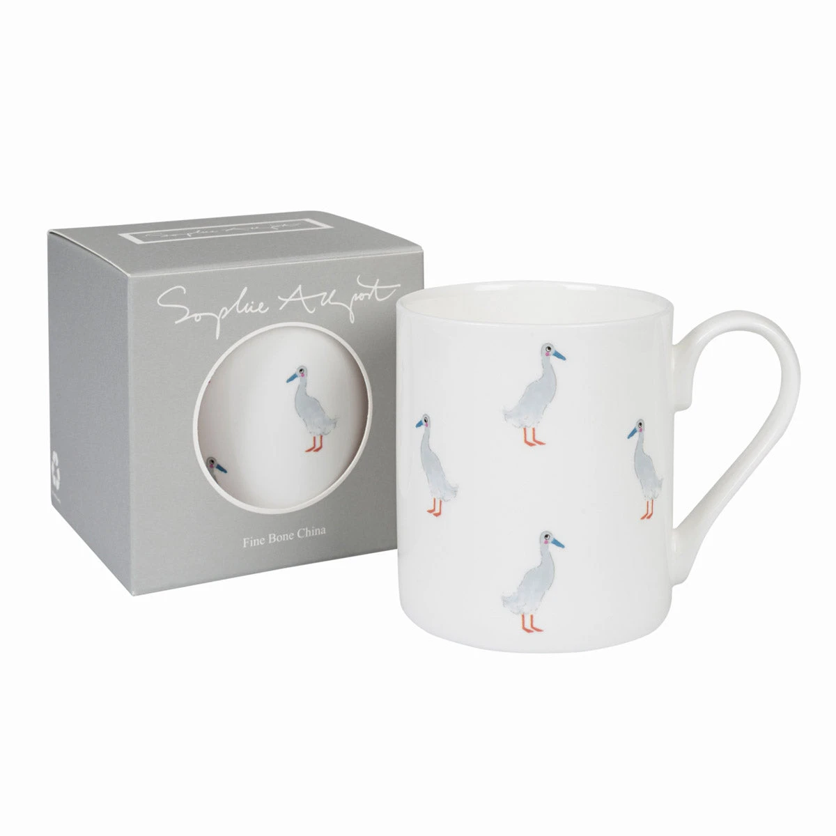 A wonderful fine bone china white mug covered in quirky runner ducks.
