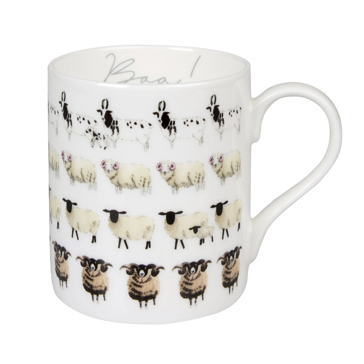 This gorgeous fine bone china mug is covered in sheep! Lots of different breeds including the Suffolk, Scottish Black Face and Jacob. Can you spot the baby black lamb?