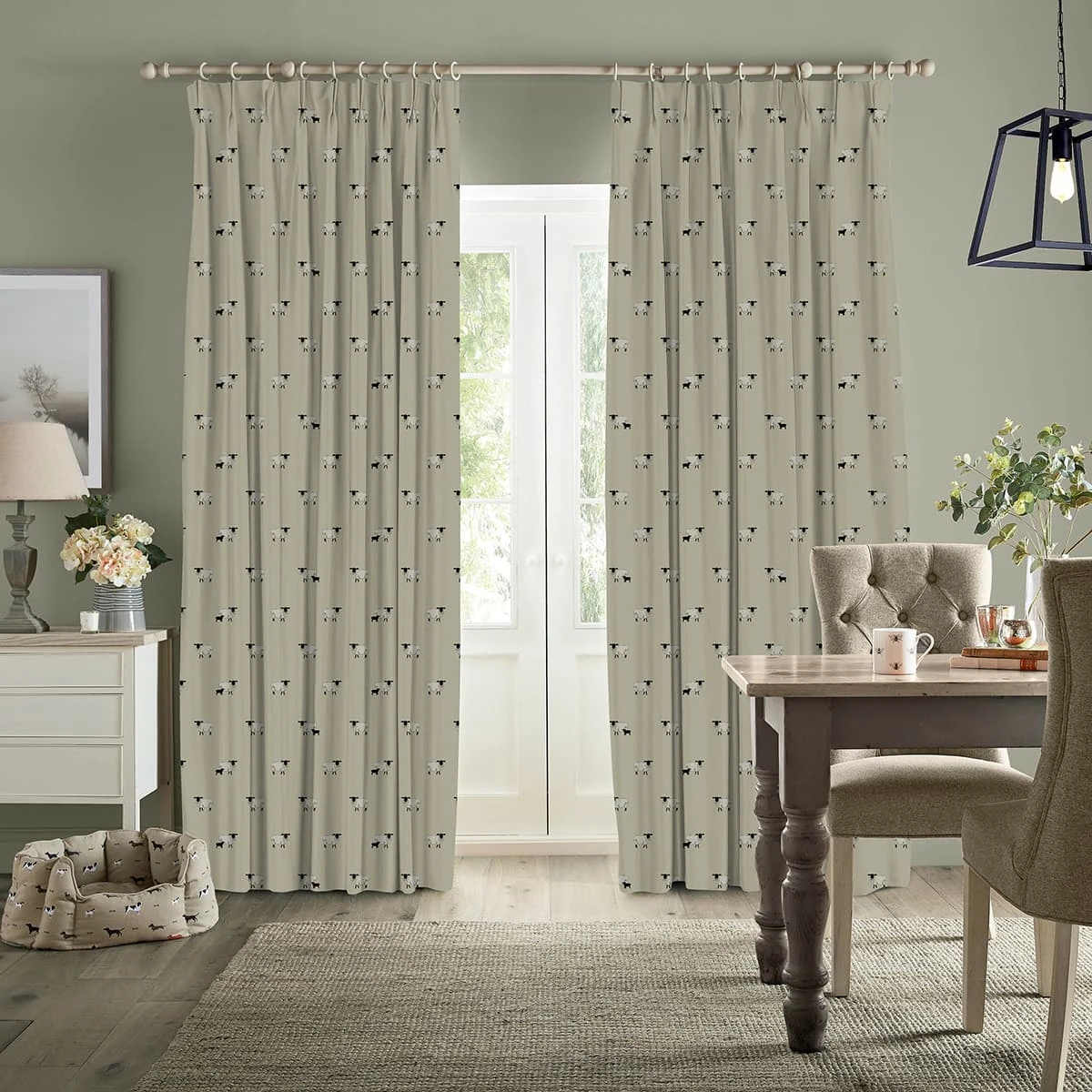 Sophie has captured the fun and playful characters in her Sheep design which features on these lovely made to measure curtains with a sand ground colour. The Suffolk Sheep is one of the oldest, native British breeds and has been in existence since the late 1700s. Perfect for living rooms, bedrooms, dining rooms and hallways, it’s a lovely way to add luxury and elegance to your home interior.