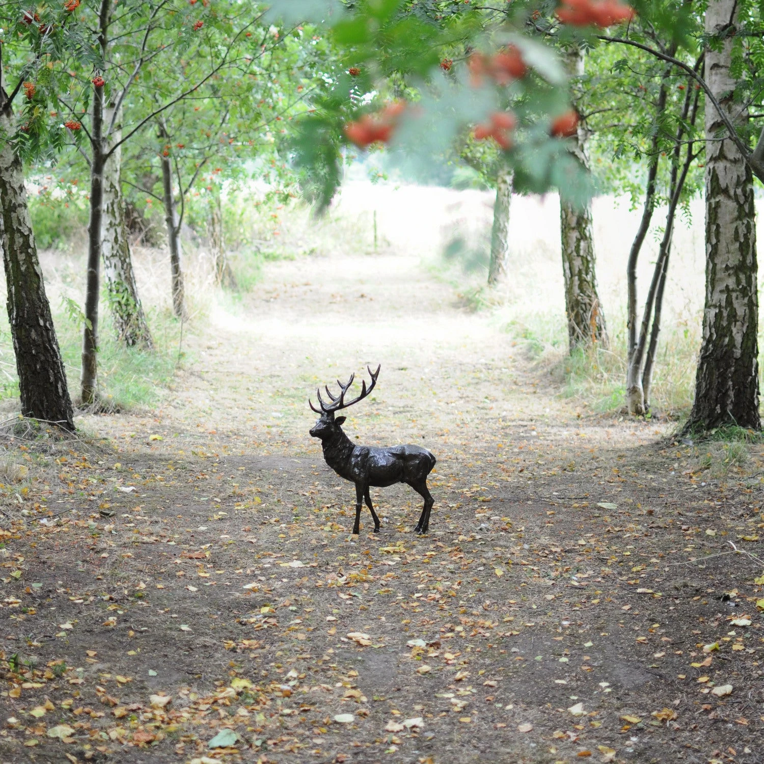 Unlike real stags, we recommend cleaning the sculpture with a soft brush and wax. If kept outside the statue will, in time, develop a surface tarnish, called a patina. This natural weathering adds character and variation to the work and will distinguish the individuality of your piece.