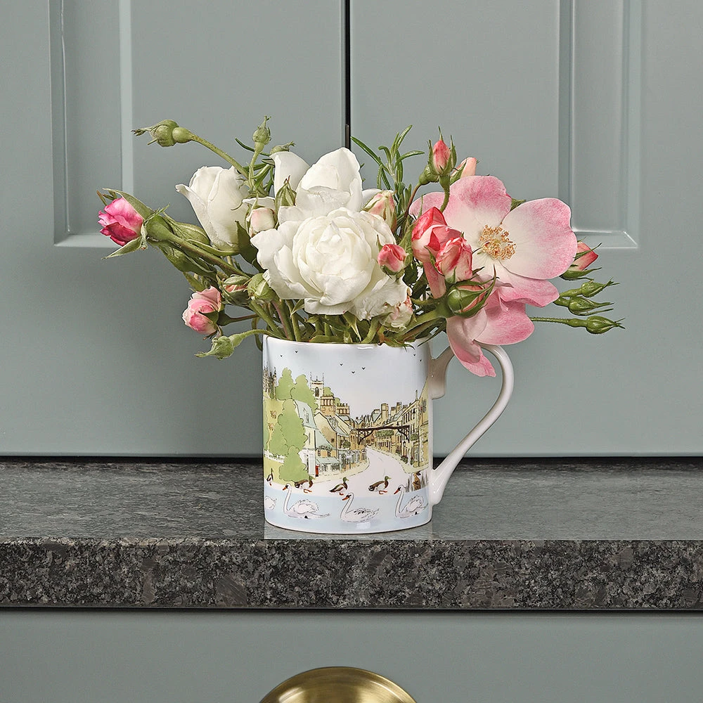 A beautiful fine bone china mug which celebrates Stamford, Lincolnshire. Home to the first high street Sophie Allport shop, Stamford is an iconic and wonderful place and a town that is close to Sophie’s heart. This lovely mug features a scenic Stamford, with the beautiful River Welland, the iconic town and Burghley House. You’ll even spot a few of the local resident ducks, swans and other wildlife. This lovely mug comes in a smart gift box making it an ideal gift.Â