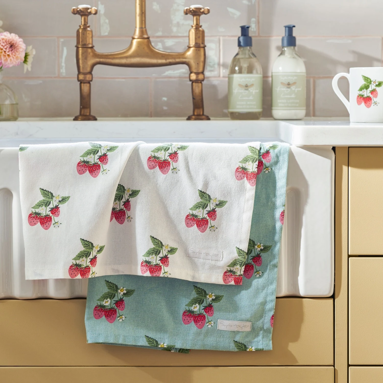 Made from 100% cotton, this set of two tea towels – one soft blue, one white – will add a fresh update to your kitchen. Sophie’s juicy Strawberries print is a watercolour-style hand drawn design and will add a bright pop of colour to your kitchen.