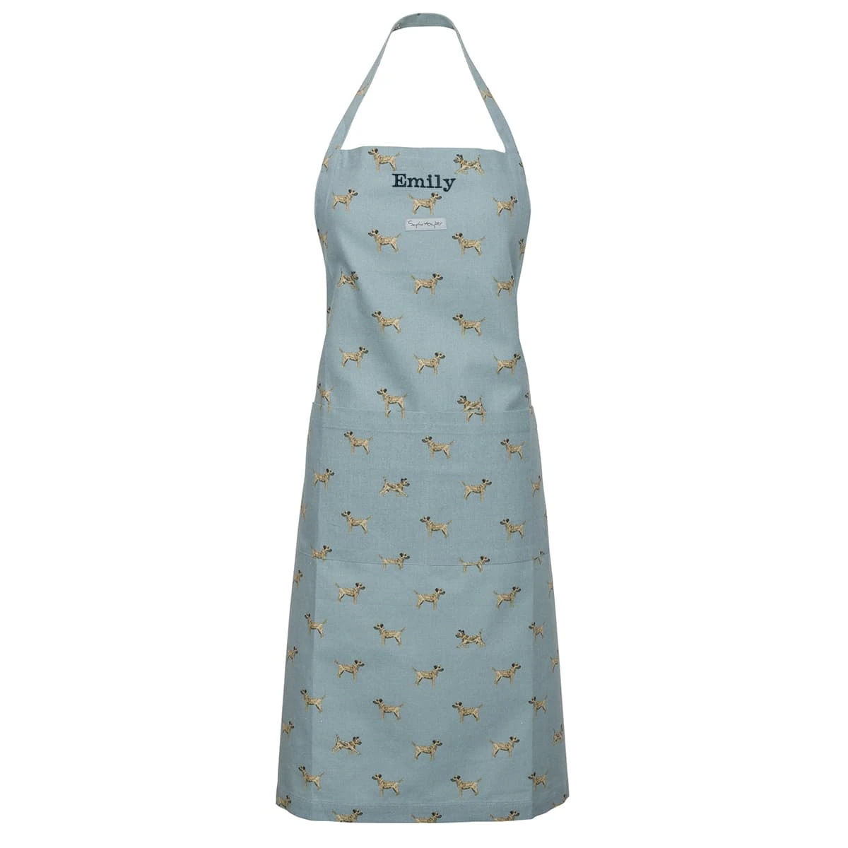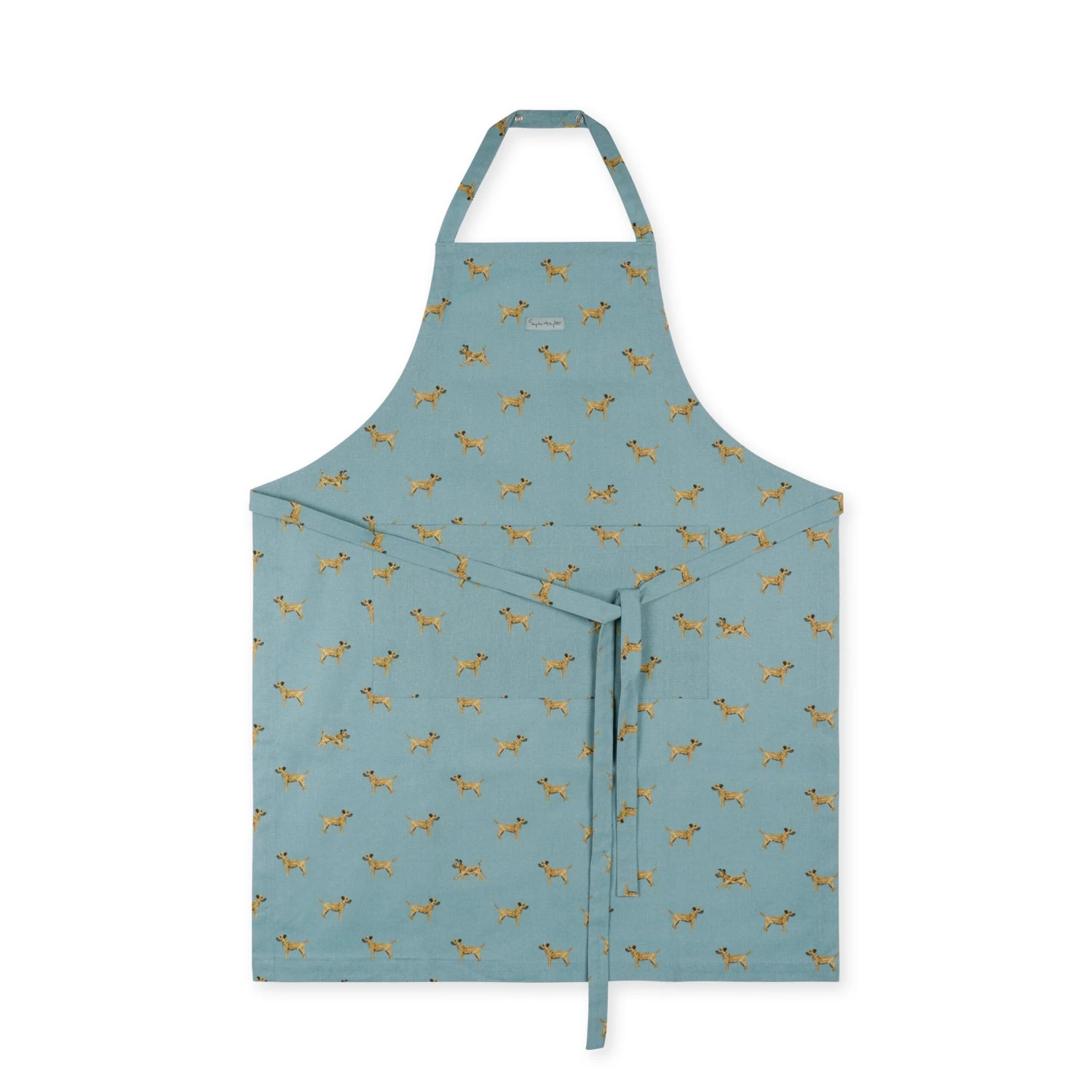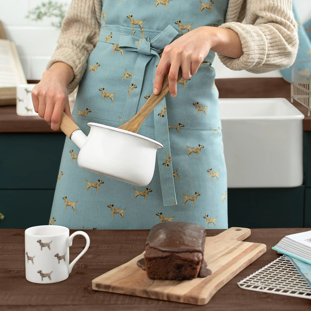This adult apron makes the perfect gift for dog lovers and owners, featuring border terriers on a teal background. Excellent for keeping your clothes free from cooking spillages and baking mess. This cotton apron also has a handy front pocket, perfect for holding utensils or accessories while cooking.