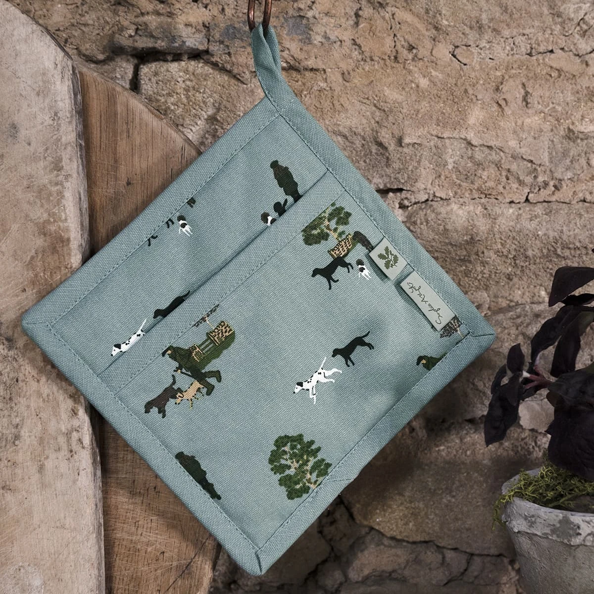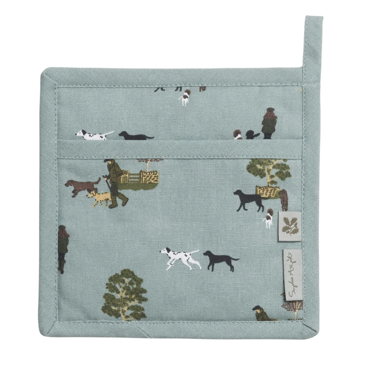 Inspired by Sophie’s love of nature and visiting National Trust parks and woodlands, this practical kitchen accessory is the perfect way to add a touch of nature to your kitchen. This pot grab features Sophie’s illustrations of dog walkers and hikers exploring woodlands and everything the great outdoors has to offer against a teal blue ground. Made from 100% cotton, this pot grab is well-padded for extra insulation whilst holding hot pots and pans or serving dinner.
