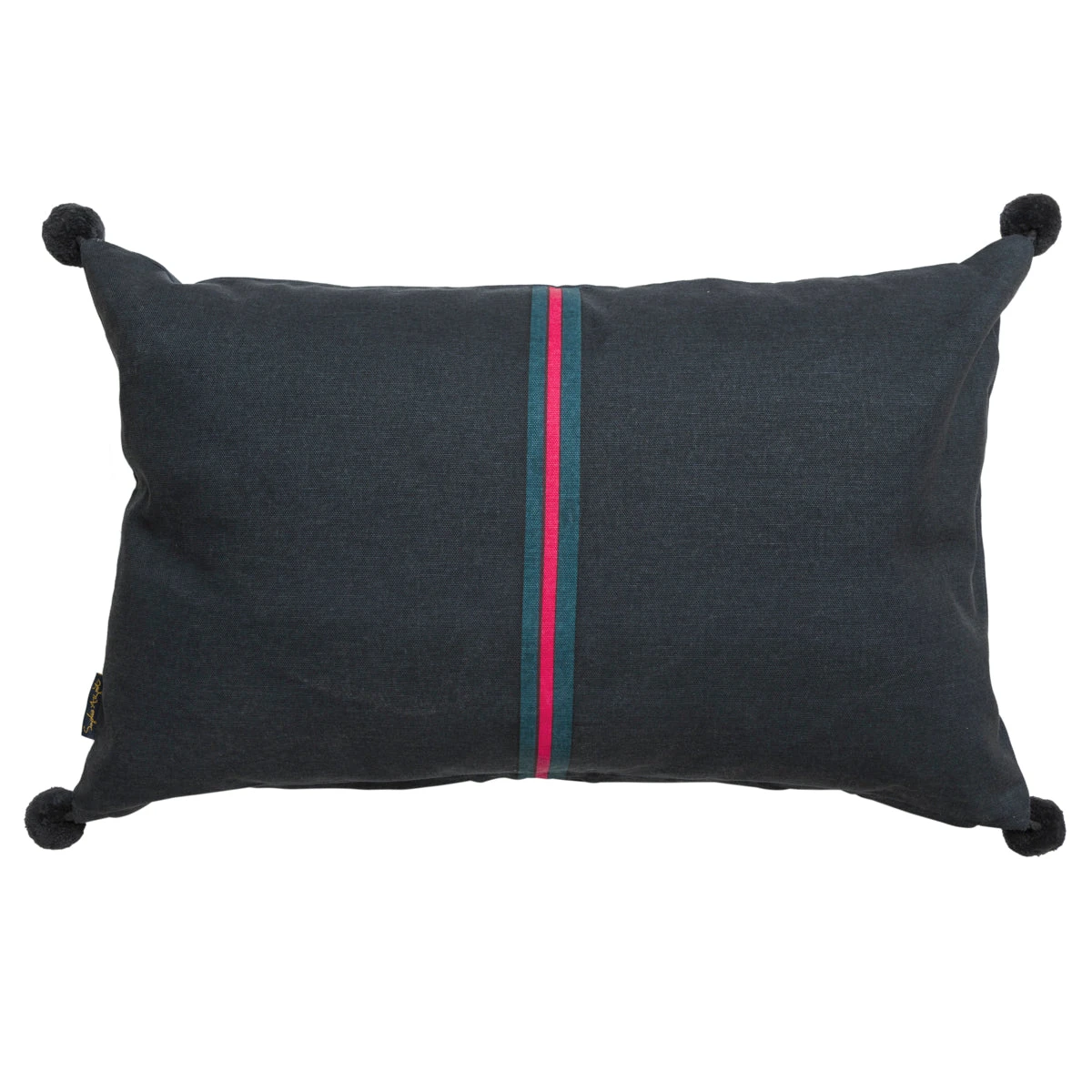 Made from 100% cotton, this lovely embroidered cushion makes a wonderful gift for zebra lovers and is finished with navy charcoal pompom corner detailing. The reverse has a contrasting pink stripe, while the front features Sophie’s illustrated Grévy’s zebras on the navy charcoal background. A lovely addition to any household.