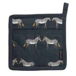 This heat-resistant pot grab is perfect for when you are cooking up a treat and features a range of Grévy’s Zebras with their distinctively black and white stripes on a navy charcoal background – a lovely addition to any kitchen.